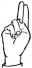 На ћирилици написано ЉУБИСЛАВ БУГАРИНОВИЋ састоји се из 19 слова [?]. Исписано ћириличном једноручном азбуком за глувонеме: